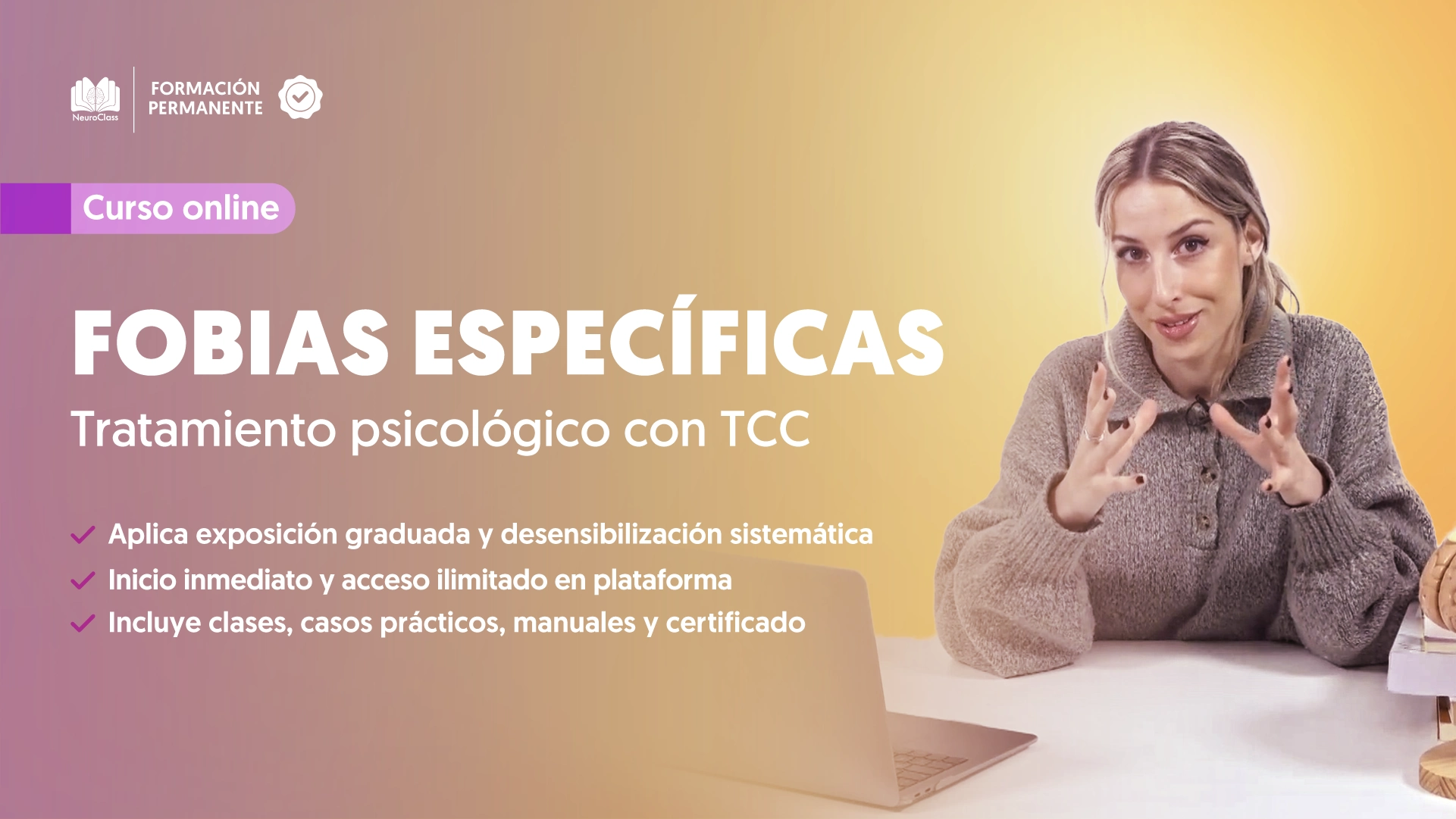 - A lo largo de siete módulos, adquirirás conocimientos sólidos sobre la evaluación y manejo de las fobias específicas, además de herramientas prácticas para implementar estrategias de exposición graduada y desensibilización sistemática.