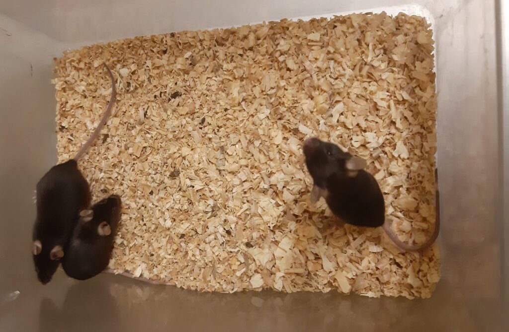Imagen. Murinos transgénicos con cuerpos que desarrollaron problemas de memoria y motrices. Imagen obtenida de: Martínez (2021)