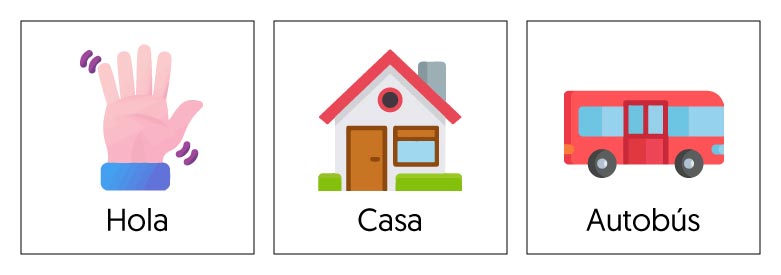 Pueden representar personas, verbos, nombres, adjetivos, adverbios, artículos, conjunciones, preposiciones, colores, conceptos espaciales y temporales, números y expresiones. Así, la interacción de los diferentes dibujos o ilustraciones facilitan la construcción de frases simples (Rodríguez, 2021).